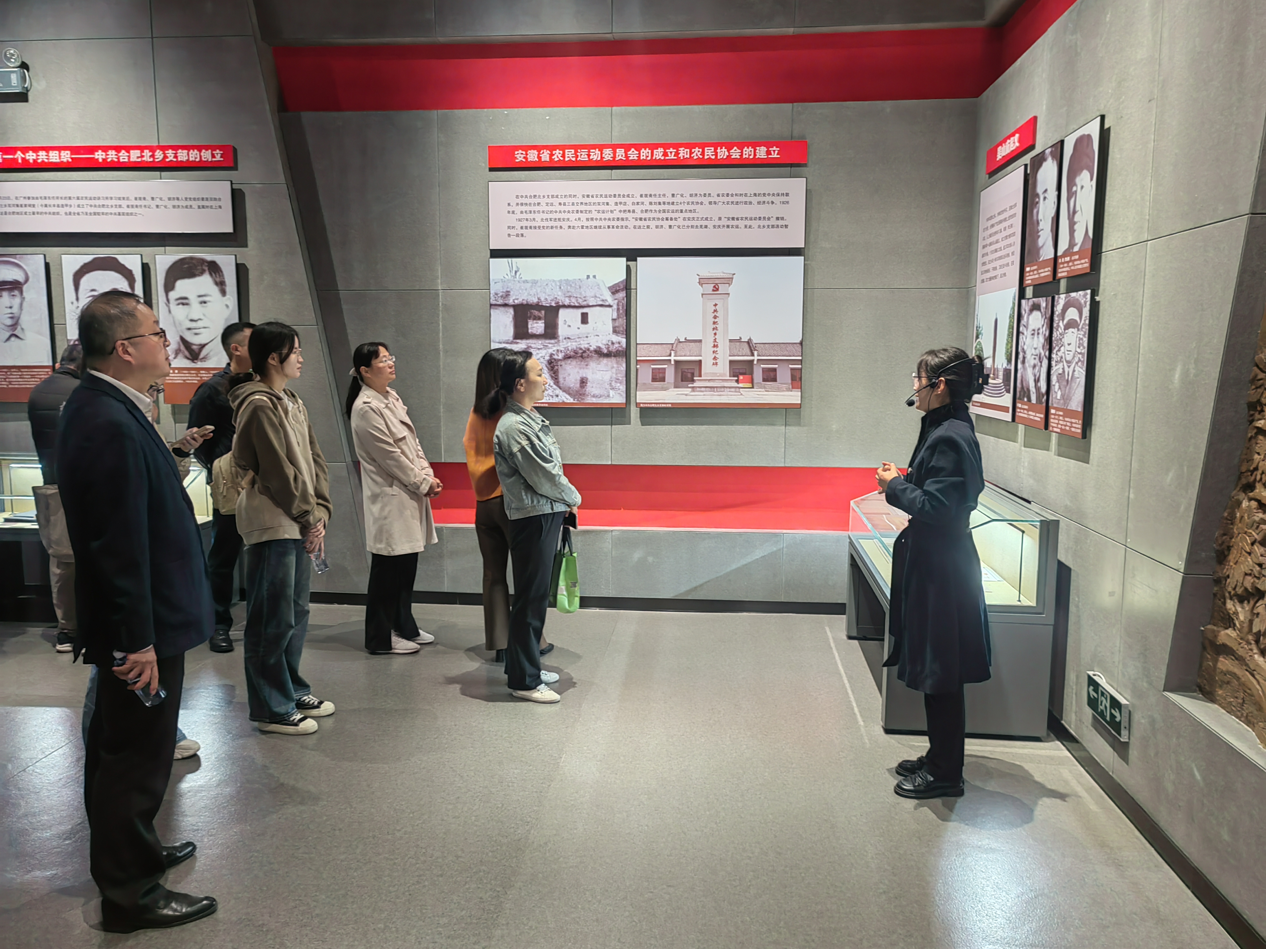 活動(dòng)中,大家一起參觀了中國(guó)共產(chǎn)黨合肥歷史館、新四軍第四支隊(duì)東進(jìn)抗日紀(jì)念館,展館中珍貴的歷史圖片、斑駁的抗戰(zhàn)文物、生動(dòng)的場(chǎng)景雕塑將大家?guī)Щ氐侥莻€(gè)艱苦卓絕的崢嶸歲月。隨后大家瀏覽了館中新青年、大革命時(shí)期、土地革命時(shí)期到社會(huì)主義現(xiàn)代化各個(gè)時(shí)期展出的檔案文獻(xiàn)、圖文展板等,對(duì)崔筱齋、馬毛姐等合肥發(fā)展史上近百位重要人物以及北鄉(xiāng)支部創(chuàng)建到整體推進(jìn)合肥現(xiàn)代化城市建設(shè)等重大事件進(jìn)行瞻仰學(xué)習(xí),切身感受了合肥百年來(lái)發(fā)生的翻天覆地的變化。