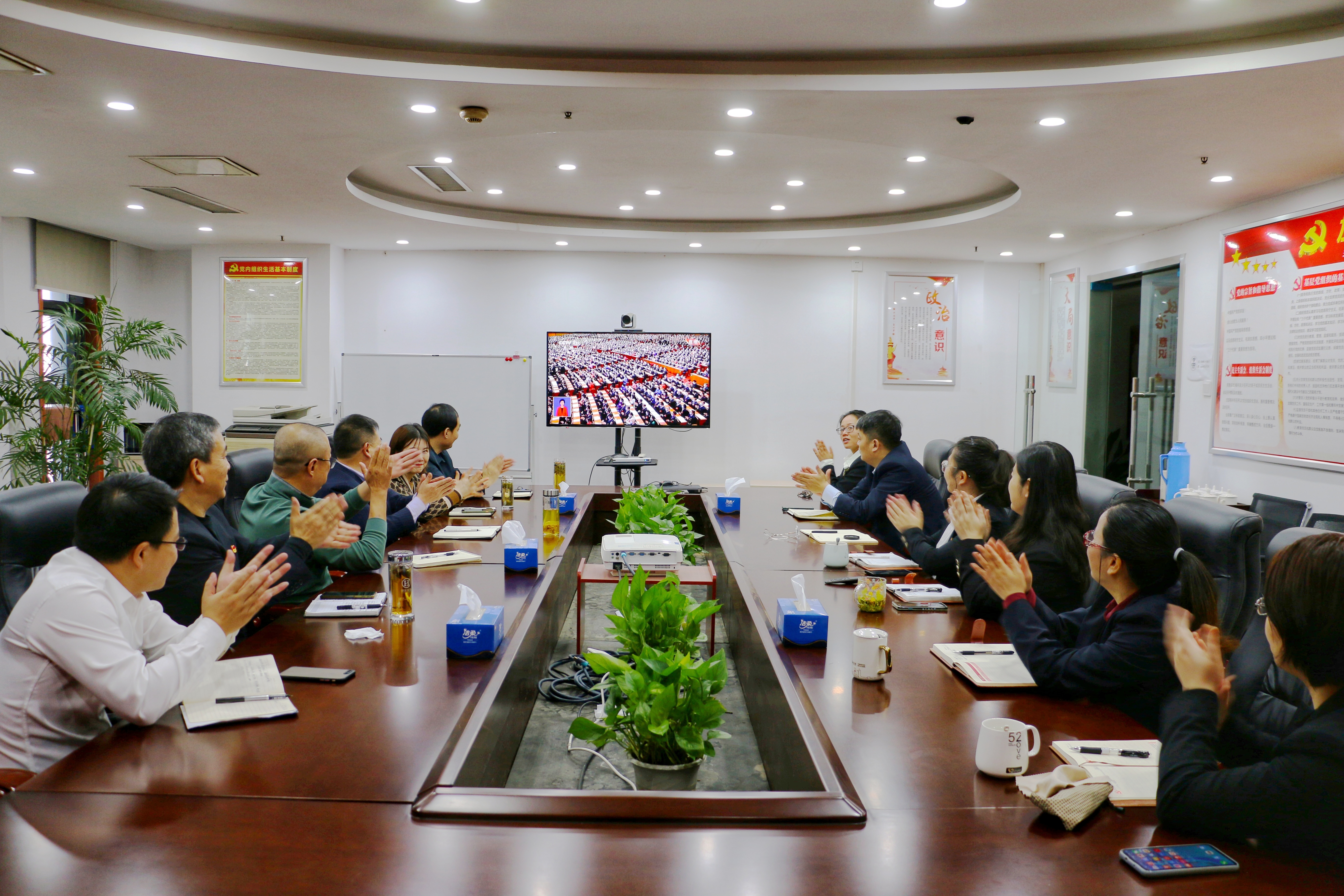 2022年10月16日上午10點,徽鹽小貸和蕪湖小貸兩公司組織全體黨員干部職工共20人集中收看黨的二十大開幕會,聆聽習(xí)近平總書記所作的重要報告。